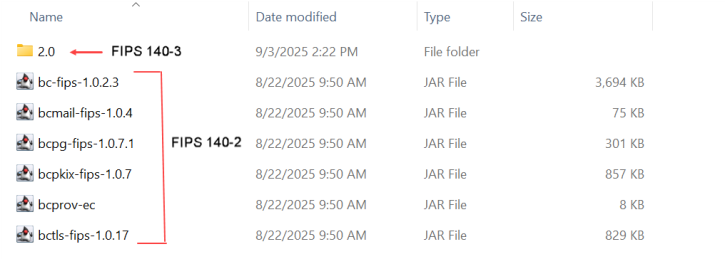 /fips/2.0 directory. They support FIPS 140-3. The files in the /fips directory support 140-2. See the image below.