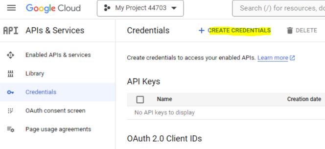 Next, click on Create Credentials