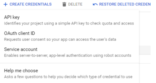 , you can either use an existing OAuth Client ID or create a new one. Existing OAuth 2.0 Client ID's (if any) are listed under Credentials. The associated JSON file for an existing OAuth Client ID would need to be provided to you by the individual or team responsible for managing your organization's Google Cloud project. If you have the associated JSON file, you can exit the Google-side instructions.