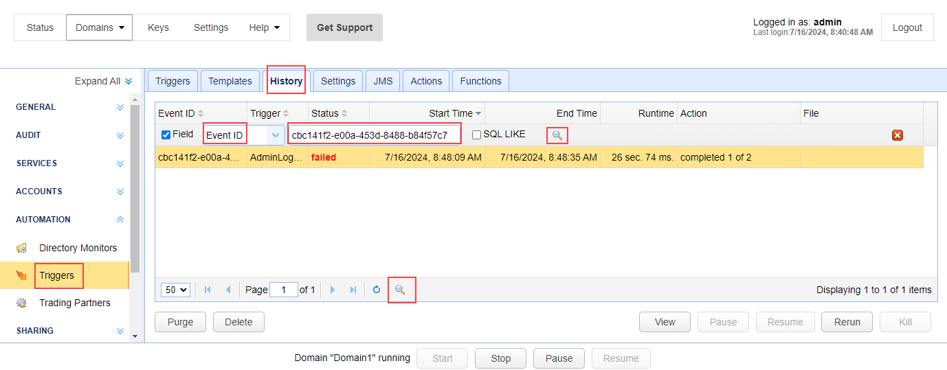 A trigger is a method of listening for events and responding with actions based on whether conditions are met. To view a list of triggers, click on the AUTOMATION > Triggers > Triggers tab for the desired domain.