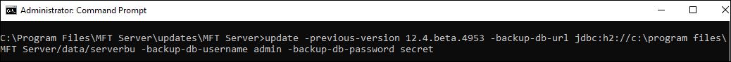 See the image below, which depicts an example using the command prompt to update the previously downloaded MFT Server installer.